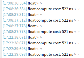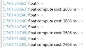printf("float compute cost: %ld ns\r\n", endTP-startTP);