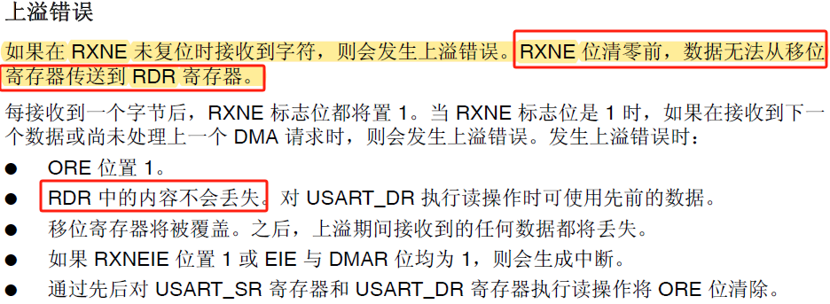 即,如果接受字节小于GNSS发送的字节量,数据寄存器DR总是会存储一位!并把ORE置1。