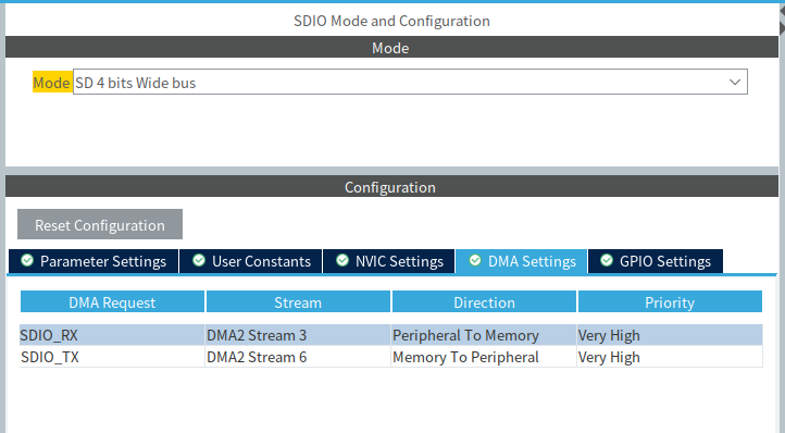 由于我有向sd卡写入imu数据(速度很快)的要求,所以要使用DMA。