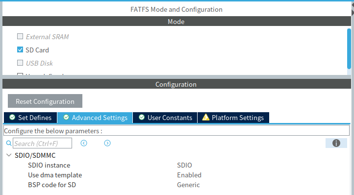 在Cube中,f4系列的单片机配置FATS中可以使用DMA模板,