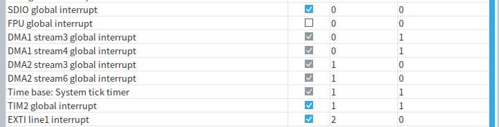 解决方法:按照上图设置优先级 SD>SPI_DMA>SD_DMA>EXTI